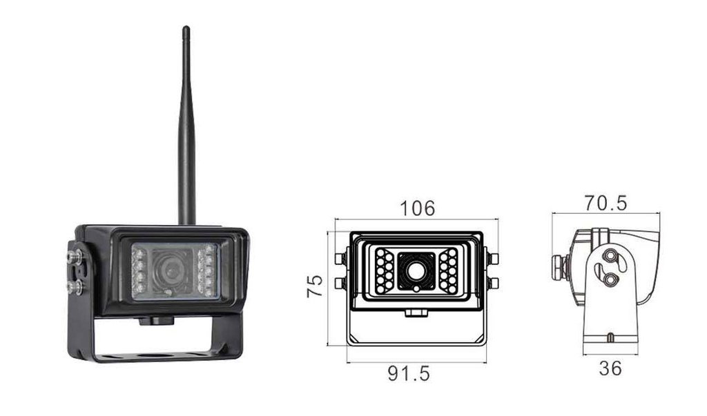 Caméra sans fil 1080P 2,4 GHz : équipée d’un processeur DSP de qualité automobile, d’un capteur haute définition en mégapixels, d’un indice d’étanchéité IP69K et de la vision nocturne par LED infrarouge.