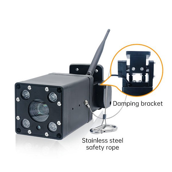 La caméra sans fil numérique 1080P associée prend en charge un zoom optique 20x et une stabilisation d’image numérique, avec une portée visuelle de 5 à 200 mètres. Elle intègre des LED infrarouges permettant une vision nocturne HD jusqu’à 50 mètres, bénéficie d’un indice de protection IP69K, et est dotée d’un support mécanique à orientation verticale, garantissant une image claire et stable dans tous types d’environnements.